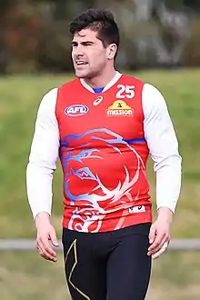 He was drafted as a mature-aged selection with pick 35 in the 2015 national draft by the Bulldogs, where he played 27 games over three seasons.[3] Ahead of the 2019 season, he was traded to the Lions, for whom he played 46 games before retiring due to concussion issues in 2023.