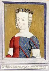 Margaret married Arnaud Amanieu, Lord of Albret,[1] on 30 June 1368; the marriage was the outcome of a secret treaty between Charles V of France and Arnaud Amanieu. The couple had one son, Charles d'Albret, who became Count of Dreux and Constable of France. He was killed at the Battle of Agincourt.