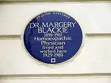 - ↑ "Healing as Vocation -The life of Margery Blackie, MD (1898 - 1981) - Katja Schuett". 8 October 2012. Retrieved 1 March 2022.