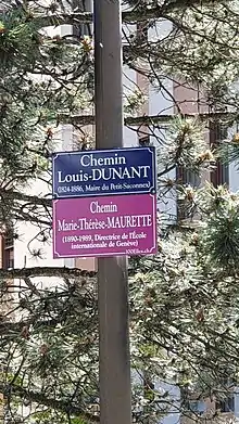 - ↑ Walker, George (2009). Marie-Thérèse Maurette: Pioneer of International Education, École internationale de Genève. p. 84. ISBN 9782839905213.