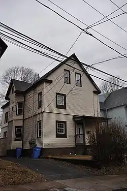 The Marietta Canty House stands in a residential area in Hartford's Clay-Arsenal neighborhood, north of the downtown. It is on the south side of Mahl Avenue, just east of its junction with Bethel Avenue. It is one of a row of similar vernacular Queen Anne two-family houses built by developer Frederick Mahl between 1893 and 1897. It is a 2+1⁄2-story wood-frame structure, with a gabled roof and exterior clad in vinyl siding. It is two bays wide, with a formerly two-story (now single-story) porch sheltering the entrance on the right bay. Although the building is not architecturally distinguished, its interior retains original finishes and materials, including staircases, trim, gas lighting fixtures, and fireplaces.[2]