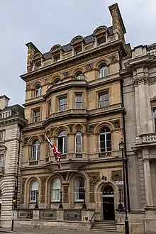 Mark Masons' Hall in Westminster, Greater London, is the headquarters of The Grand Lodge of Mark Master Masons of England and Wales, which is also responsible for the Royal Ark Mariner degree. It is located in 86 St James's Street in the district of St James's, opposite St James's Palace. While Freemasons' Hall is the headquarters of the United Grand Lodge of England and the Supreme Grand Chapter of Royal Arch Masons of England, Mark Masons' Hall is the home of several other important appendant orders of Freemasonry in England and Wales.