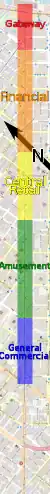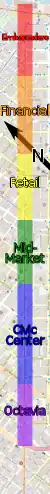 What to Do About Market Street,[24] published in December 1962,[48] organized Market into five distinct districts, from east to west: