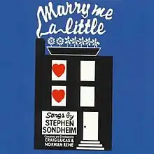 Marry Me a Little is a musical with lyrics and music by Stephen Sondheim, conceived by Craig Lucas and Norman René. The revue sets songs cut from Sondheim's better-known musicals, as well as songs from his then-unproduced musical Saturday Night, to a dialogue-free plot about the relationship between two lonely New York single people, who are in emotional conflict during an evening in their separate one-room apartments. Despite knowing of the other's existence, they never get up the courage to talk to each other, though they imagine what such an encounter might be like.[1]