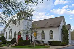 Marshallton United Methodist Church is a historic United Methodist church located at 1105 Stanton Road in Marshallton, New Castle County, Delaware. The original portion was built in 1886 as a one-room, 30-foot by 50-foot center-aisle plan frame structure with a gable roof. It sits on a foundation of "Brandywine Granite", a commonly found local building stone. In 1922, a 30-foot by 45-foot gabled frame addition was added on the east side of the original building. At the same time, Gothic arched commemorative stained glass windows and a bell tower were added. A three-story brick educational building and fellowship hall were added between 1949 and 1957.[2]