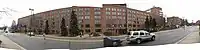 A panorama taken in early 2007, of the "back" of Mary Markley Hall. The picture was taken from the bus stop that is across East Medical Center Drive from the building.