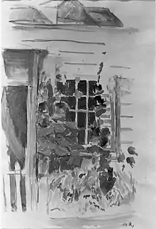Black and white reproduction of Cottage Window, Watercolor, Brooklyn Museum