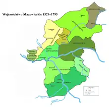 Masovian Voivodeship (Polish: Województwo Mazowieckie) was an administrative region of the Kingdom of Poland, and of the Polish–Lithuanian Commonwealth, from the 1526 to the partitions of the Polish–Lithuanian Commonwealth (1795). Together with Płock and Rawa Voivodeships, it formed the province of Masovia. Its area was 23,200 km2., divided into ten lands (see ziemia). The seat of the voivode was Warsaw, local sejmiks also convened in Warsaw, at St. Martin's church.