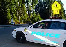 U.S. Navy Master-at-Arms performing a traffic enforcement of the installation's speed limit.