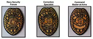 Today Master-at-Arms wear the same uniform worn throughout the fleet, with a "universal" metal or cloth badge affixed to right side of the uniform, 1/4-inch above the name tape of the sailor, with no difference in position for gender.[15]
