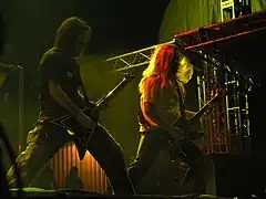 Masters of Rock is a metal festival in Vizovice, Czech Republic. The main styles represented at this festival are power metal, speed metal, and heavy metal.[1] In the past, the festival has featured bands such as Judas Priest, Motörhead, Slayer, Helloween, Uriah Heep, Manowar, Dream Theater, Nightwish, Accept, Anthrax, Sweet, Twisted Sister, Europe, HammerFall, Stratovarius, Gamma Ray, Rhapsody of Fire, Sabaton, Kreator, Edguy, Rage - also with symphonic orchestra, Tarja Turunen, Apocalyptica, Within Temptation, Children of Bodom, Avantasia, Sebastian Bach, Behemoth, Amon Amarth, and many more. The 2005 attendance was over 20,000, the 2006 one over 25,000 and finally the 2007 was over 30,000. The festival is held every summer and the Winter morphosis takes place in November in the town of Zlín. Since 2010 the main stage of summer festival is named after Ronnie James Dio, who died earlier that year.