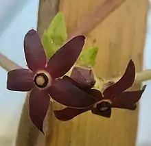 Matelea floridana (also called Florida Milkvine or Florida Spiny Pod) is a flowering plant within the Milkweed Subfamily (Family Apocynaceae; Subfamily Asclepiadoideae).[1] It is endemic to Florida and two counties in Georgia, and is listed as Endangered.[2] It is a perennial dicot.[3] Flowers are purplish black, 1–2 cm in diameter, borne on short pedicels that occur at mature nodes along the stem, from one to many flowers.[4] Leaf pairs are opposite, cordate from 5–10 cm in length, lightly pubescent.