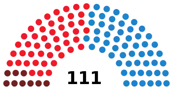 Last election 55 seats, 51.1% 39 seats, 36.4% 8 seats, 7.7%