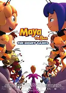 Maya the Bee: The Honey Games is a 2018 animated comedy adventure film directed by Noel Cleary, Sergio Delfino & Alexs Stadermann.[5] Loosely based on characters from the 1975 anime Maya the Honey Bee and the German children's book The Adventures of Maya the Bee by Waldemar Bonsels, the film is a sequel to the 2014 film Maya the Bee and stars the original voice cast reprising their roles from the first film, with newcomers including Rupert Degas.