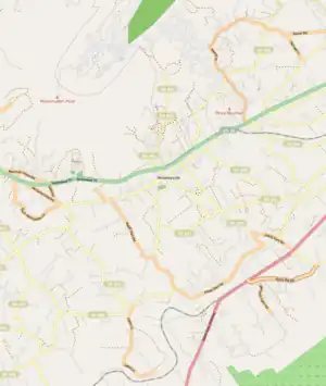McGayeysville lies in northern central Virginia in the northeastern United States. It lies along the U.S. Route 33, between Penn Laird to the west and Elkton to the east.[9][10] This road is part of the Spotswood Trail which leads from Harrisonburg located several kilometres beyond Penn Laird to the west. McGaheysville is located near the south fork of Shenandoah River in the heart of the Shenandoah Valley. The land to the immediate south of the village consists primarily of farmland but beyond that is the mountainous Shenandoah National Park. The area immediately north of the village is mountainous with the peak of Massanutten, located just to the northeast.[9] Piney Mountain, even nearer to the village than Massanutten, is located in the northeastern part of McGaheysville.
