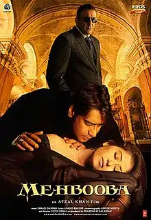 Mehbooba ("Beloved") is a 2008 Indian Hindi-language romance film written, produced and directed by Afzal Khan. The story is based on a love triangle, with the lead protagonists being Sanjay Dutt, Ajay Devgn and Manisha Koirala. The music of the film was composed by Ismail Darbar. Mehbooba was released in India on 11 July 2008; it was shot in 2000, but got delayed and released in 2008.[2][3][4][5][6]