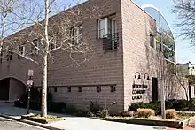 The two-story, 300-seat church, featuring a vaulted ceiling as well as glass and masonry walls, was designed in the modernist style by Maryland architect Suzane Reatig.[20][21] A columbarium for urns was built into the small chapel on the second floor and its design reflected the continued high number of deaths at the time due to AIDS. The striking design was praised in reviews by Benjamin Forgey, architecture critic for The Washington Post and Herbert Muschamp, architecture critic for The New York Times.[21][22][23]