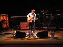 The Waterboys' membership has changed a great deal throughout the group's existence. Anthony Thistlethwaite, Karl Wallinger, Kevin Wilkinson and Steve Wickham all made major contributions, but Scott describes the band as his project. "[T]o me there's no difference between Mike Scott and the Waterboys; they both mean the same thing. They mean myself and whoever are my current travelling musical companions."[9] The Waterboys' first release was a single of "A Girl Called Johnny" in March 1983. The first album came out that June. Along with The Waterboys, the next two albums, A Pagan Place and This Is the Sea, released in 1984 and 1985, contained songs mostly written by Scott, and together formed the band's "Big Music" period. After the official addition of fiddler Steve Wickham and a move to Ireland, the next two albums Fisherman's Blues (1988) and Room to Roam (1990) were instead Celtic music-inspired folk music,[10] a sound similar to that of We Free Kings, a band that Scott and Wickham performed with in 1986.[11] Scott's musical style changed again to a more guitar based sound when he, under the name The Waterboys but without any other members, recorded Dream Harder, in 1993. It was a return to the "Big Music" sound but the last album to come out under the band's name until 2000. The band had dissolved over personnel issues and Wickham's desire to remain with a folk-rock, or purely folk music, sound.[12] After two Mike Scott solo albums, A Rock in the Weary Land was released under The Waterboys name, demonstrating yet another musical style, which Scott called "Sonic rock".[9] 2002's Universal Hall was a return to a folk-rock sound. It was followed by Karma to Burn, released in 2005, which was the group's first official live album, Book of Lightning, released in 2007, and An Appointment With Mr Yeats, released in 2011.