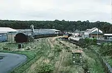 Up until 1947, three daily 'vacuum fish' express services transported fish from the Haven to various destinations in the UK, including London Paddington, Yeovil and the north of England.[9] Fish vans were often attached to passenger trains.[10] Goods traffic remained dominant over passenger traffic until the commercial decline of the docks in the late twentieth century.[11] Into the twentieth century, direct services to London Paddington were in operation, and a sleeper service remained in place until the 1960s.[5] The sidings were reduced substantially in 1968, although goods traffic continued until the 1980s.[10] InterCity 125 services from London Paddington to Milford ran until the early 1990s, terminating in 1994.[5][12] Sealink operated a service to Dún Laoghaire briefly between 1978 and 1979 from Milford.[10] A scheme to expand the freight capability at Milford Haven is under development, based on a new import facility for biomass and wood pellets for the energy market in England and Wales.[13] In September 2019, MP for Preseli Pembrokeshire Stephen Crabb called on politicians and Network Rail to upgrade Milford station, citing a lack of suitable facilities.[14]