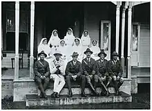 New Zealand sent 10 contingents, a total of approximately 6,500 men and 8,000 horses. The first five contingents embarked for South Africa in the first six months of the war. The last three contingents arrived in South Africa near the end of the conflict and saw limited action. The first two contingents were paid for by the New Zealand government, while the third and fourth contingents were paid for through community contributions. The subsequent six contingents were paid for by the British government.[40] A total of 230 New Zealanders died during the war, 71 were killed in action, 133 died from diseases, and 26 killed in accidents.[38] The majority of New Zealanders who participated in the war were Pākehā. However, there was Māori support for the war, with Seddon and Māori leaders offering to send a Māori-manned contingent. However, the British government declined offers of Māori-manned contingents, as they believed 'native' troops should not participate in a "white man's war". However, some Māori individuals managed to enlist under anglicised names.[41][40] New Zealand women also played a significant role in funding the war, organising fundraisers like the Girls' and Ladies' Khaki Corps in lieu of government funding limitations.[35][40][42]