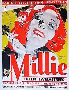 Millie is a 1931 American pre-Code drama film directed by John Francis Dillon from a screenplay by Charles Kenyon and Ralph Morgan, based on a novel of the same name by Donald Henderson Clarke. The film was an independent production by Charles R. Rogers, distributed by RKO Radio Pictures, after their acquisition of Pathé Exchange. It stars Helen Twelvetrees in one of her best roles, with a supporting cast that includes Lilyan Tashman, James Hall, Joan Blondell, John Halliday and Anita Louise.
