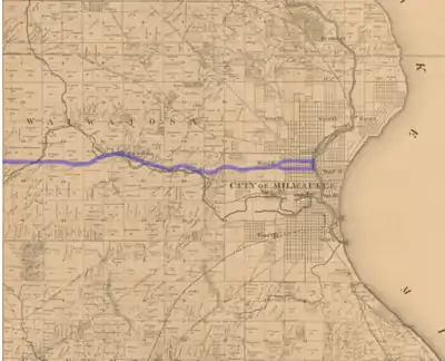 - ↑ "Milwaukee-Watertown Plank Road Completed in 1853". Watertown Daily Times. December 30, 1986. Retrieved January 19, 2014.