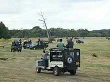 Large numbers of Sri Lankan elephants are attracted to grass fields on the edges of the reservoir during the dry season.[1] The Minneriya tank contributes to sustain a large herd. Elephants gathered here is numbering around 150–200.[4] Some reports account number of elephants to as high as 700.[5] They migrate here from Wasgamuwa National Park and benefit from food and shelter of the park's forest. Tourists visit Minneriya largely because of elephants, especially in dry season.