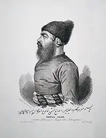 Mirza Saleh Shirāzi (Persian: میرزا صالح شیرازی; c. 1790 – c. 1845) was an Iranian court translator and diplomat, who published the first newspaper in Iran in 1837, the Kaghaz-e Akhbar (lit. "paper of news").