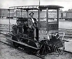 T.V. Young, the Superintendent of the M.R. & B.T. in a track inspection vehicle