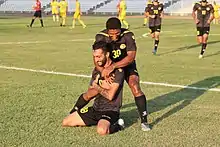 Kdouh with Ahed in 2020, celebrating his hat-trick against Bourj