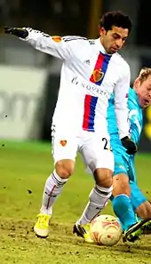 Swiss Super League club Basel had been monitoring Salah for some time,[27] so following the Egyptian Premier League suspension, the club organised a friendly match with the Egypt national under-23 team.[28] The match took place on 16 March at the Stadion Rankhof in Basel, and despite only playing the second half, Salah scored twice, helping the Egyptians to a 4–3 win.[29] Basel subsequently invited Salah to remain in the city for a week's training. On 10 April 2012, it was announced that Salah had signed for Basel on a four-year contract starting from 15 June 2012.[30][31][32] He initially found it difficult to settle, having arrived unable to speak the language and been signed as a replacement for Xherdan Shaqiri.[33] Salah scored on his unofficial debut on 23 June 2012 against Steaua București during a friendly match, a 4–2 defeat.[34] He made his official Basel debut in a UEFA Champions League preliminary stage match against the Norwegian club Molde on 8 August, coming on as a substitute in the 74th minute.[35] He made his league debut on 12 August against Thun, playing the full match.[36]