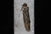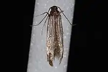 The wingspan is 10โ€“11 mm. There is one generation per year with adults on wing from the second half of June to the middle of August.