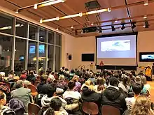 Richard presenting her "Logan Solo" conference to university students (2018)
