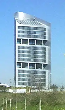 The Monsanto Tower (Portuguese: Torre de Monsanto) is a 394-foot (120 m)[1] skyscraper in Oeiras, a town and municipality to the west of Lisbon which is part of the Portuguese capital's urban agglomeration. Finished in 2001, the 17-floor building is the second tallest in Portugal.[1] Lisbon-based architectural firm Sua Kay Architects designed the 21,000-square-metre (230,000 sq ft) office building.[1][2]