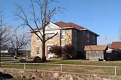 The Montgomery County Courthouse is located at Court Square in the center of Mount Ida, the county seat of Montgomery County, Arkansas. It is a two-story masonry structure, distinctively blending local rustic character with Classical Revival styling. Its walls are fashioned out of randomly laid fieldstone, but features a projecting entry section with a fully pedimented gable with an oriel window at its center. The courthouse was built in 1923 to a design by Clyde A. Ferrel.[2]