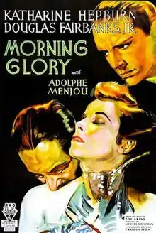 Morning Glory is a 1933 American Pre-Code drama film which tells the story of an eager would-be actress and her journey to stardom, and her gains and losses. The picture stars Katharine Hepburn, Douglas Fairbanks Jr., and Adolphe Menjou, was adapted by Howard J. Green from a then-unproduced stage play of the same name[2] by Zoë Akins, and was directed by Lowell Sherman. Hepburn won her first Academy Award for Best Actress for this movie. Morning Glory was remade in 1958 under the title Stage Struck.