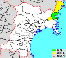 colored area=original extent in Meiji period; green=present area