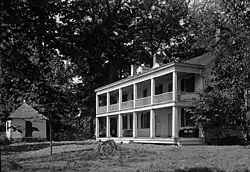 Mount Adams, also known as The Mount, is a historic home and farm complex located at Bel Air, Harford County, Maryland, United States. The complex consists of a 114-acre (46 ha) working farm, originally part of Broom's Bloom, centered on a large, multi-sectioned, 2+12-story frame house built in 1817 in the Federal style. The house has an 1850, 2+12-story cross-gabled addition, connected, but an independent unit from the main house, and slightly taller in the Greek Revival style. The property include a stone bank barn, a stone-and-stucco dairy, a stone-and-stucco privy, all dating from the early 19th century, as well as a family cemetery. Its builder was Captain John Adams Webster.[2]