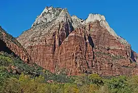 Mount Majestic, also known as Majestic Mountain, is a 6,956-foot (2,120 m) elevation Navajo Sandstone double-summit mountain located in Zion National Park, in Washington County of southwest Utah, United States.[3]