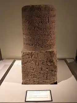 Munggu Antan is an inscription in the Old Javanese language in the form of a stone stele found in the village of Bulus, Purworejo Regency, which was once included in the Kedu Residency (now in Central Java, Indonesia). This inscription contains the designation of the village Munggu Antan as a sima (a revenue-diverted area), becoming the domain of a Buddhist monastery (vihāra) in Gusali. This inscription was issued on 9 February 887[1] by the official (sang pamegat) of Munggu and his younger sister Sang Hadyan Palutungan, who was also the wife of the 'deity who rests at Pastika' (a deceased king), at the behest of the reigning king Bhadra, lord of Gurunwangi.[2][3] Only four days after this inscription was issued, King Bhadra is said to have fled the palace, ushering in a period of contested leadership that lasted until 894.[4]:24–25