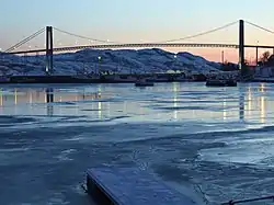 The Nærøysund Bridge (Norwegian: Nærøysund bru) is a suspension bridge that crosses the Nærøysundet strait between the islands of Marøya and Nærøysund in Trøndelag county, Norway. It is located about 1 kilometre (0.62 mi) south of the village of Rørvik. Together with the Marøysund Bridge, it connects the islands of Vikna to the mainland. The Nærøysund Bridge is 701 metres (2,300 ft) long, the main span is 325 metres (1,066 ft), and the maximum clearance to the sea is 41 metres (135 ft). The bridge has 17 spans. The Nærøysund Bridge was opened in 1981, when it briefly held the title of the world's longest cable-stay bridge.[1][2]