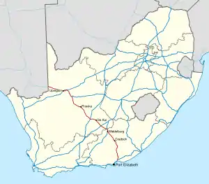 - ↑ Falkner, John (May 2012). South African Numbered Route Description and Destination Analysis (Report). National Department of Transport. p. 24. Archived from the original on 6 June 2014. Retrieved 12 August 2014.