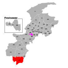 NA-45 Dera Ismail Khan-II (این اے-45، ڈیرہ اسماعیل خان-II) is a constituency for the National Assembly of Pakistan. The constituency was created in 2018 by bifurcating NA-25 (Dera Ismail Khan-cum-Tank) where Tank district shared its representation with a portion of Dera Ismail Khan District. In 2018, Tank District got its own constituency while the Dera Ismail Khan areas of the old constituency are now included in NA-39 (Dera Ismail Khan-II). In 2022 Constituency no is changed into NA-45 (Dera Ismail Khan-II)[2][3]