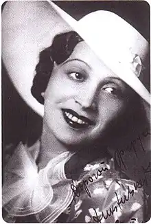 Nadezhda Dukstulskaite was born in a Jewish family of musicians in what was then Dvinsk, part of the Russian Empire but is now the Latvian city of Daugavpils. Her talent manifested itself very early, during piano studies under her father, Martynas Dukstulskis, from age five, and from age seven at a private piano school in the Lithuanian city of Kaunas, where the family moved in 1918.[5] At age 12 she was admitted to the Stern Conservatory in Berlin, where she studied for six years under the influential piano teacher Leonid Kreutzer, graduating in 1928.[6] Shortly after returning to Kaunas, her father died unexpectedly. To support the family, she took a job playing piano at a cinema.[7]