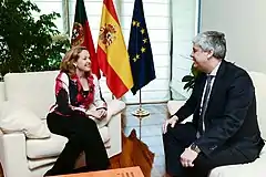 During the electoral debate of 5 November 2019, Pedro Sánchez announced that Calviño would be appointed economic vice-president if he were elected president,[12] office she assumed as third deputy prime minister and Minister of Economic Affairs and Digital Transformation[13][14] on 13 January 2020 before the King.[15][16] On 31 March 2021, she was promoted to Second Deputy Prime Minister[17] and on 12 July 2021 to First Deputy Prime Minister.[18]