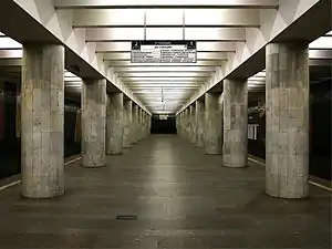 Nagatinskaya (Russian: Нагатинская) is a station of Serpukhovsko-Timiryazevskaya line of Moscow Metro. It was opened together with several other stations of the southern part of the line on 8 November 1983.[1] It lies underneath the surface with the depth of 13.5 metres (44 ft). The passenger dynamics for the station are 54,900 per hour on entry and 57,500 on exit.