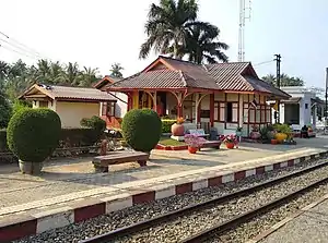 Nakhon Chum railway station is a railway station in Nakhon Chum Sub-district, Ban Pong District, Ratchaburi. It is a class 3 railway station 74 km (46.0 mi) from Thon Buri railway station. Nakhon Chum Station is one of the stations where the main station building is on the passing loop.