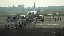 Passengers boarding Nok Air flight at Nakhon Si Thammarat Airport