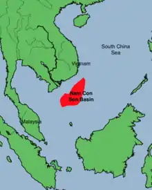 The Nam Con Son Basin (also known as the Wanan Basin)[1] formed as a rift basin during the Oligocene period. This basin is the southernmost sedimentary basin offshore of Vietnam, located within coordinates of 6°6'-9°45'N and 106°0-109°30'E in the East Vietnam Sea. It is the largest oil and gas bearing basin in Vietnam and has a number of producing fields.[2]