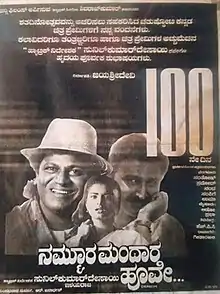 Nammoora Mandara Hoove (transl. The flower grown in our town) is a 1996 Indian Kannada-language film directed by Sunil Kumar Desai starring Shiva Rajkumar, Ramesh Aravind and Prema in lead roles.[1] It's considered one of the all-time blockbuster romantic movies in Kannada Film Industry. The film received two awards at the 1996–97, Karnataka State Film Awards including Best Child Actor – Male for Master Vinayak Joshi and Best Female Playback Singer for K. S. Chithra.